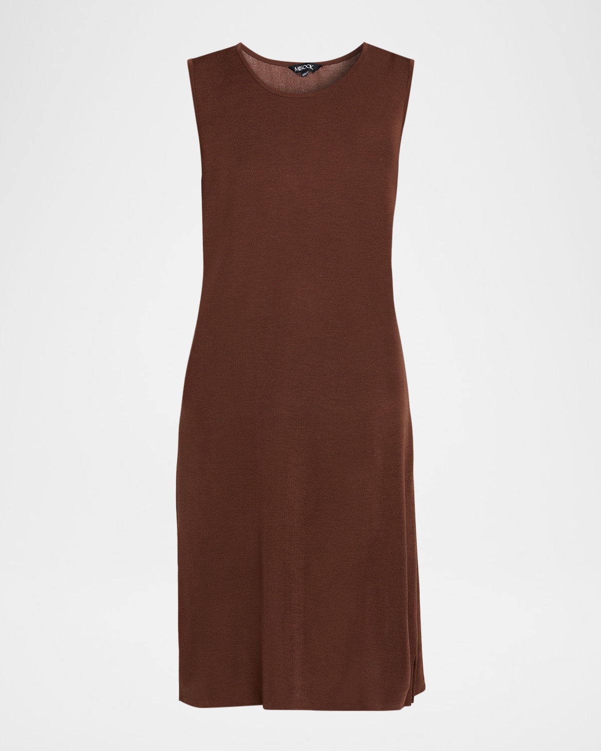 This Misook "Mylana" dress is crafted in wrinkleresistant knit, lightweight and fluid for an elegant bodyskimming feel Approx. 40"L from shoulders to hem Scoop neckline Sleeveless Double side slits; approx. 3"L Hem hits around the knee Bodyskimming silhouette Slipover style Acrylic/polyester Unlined Machine wash cold Imported