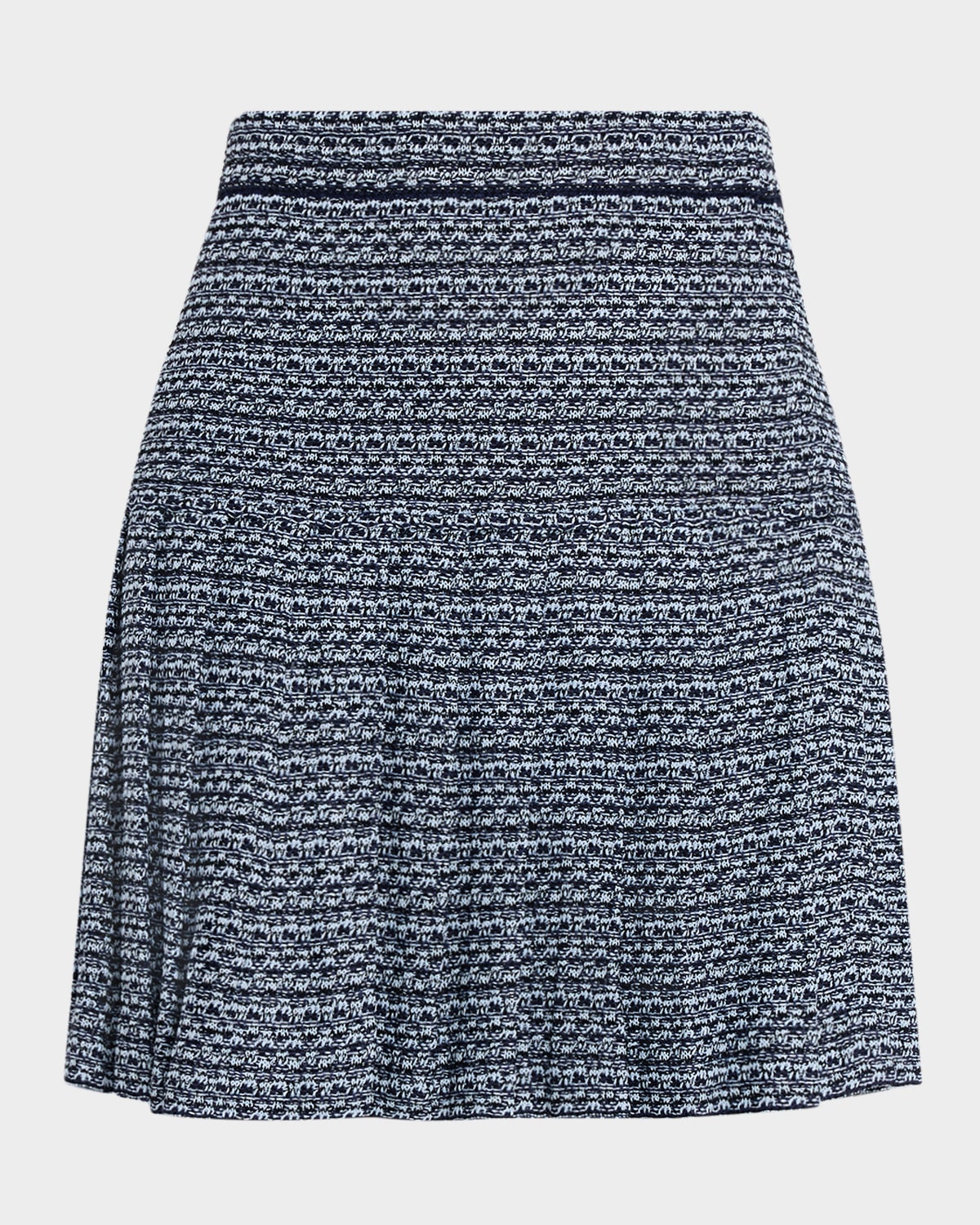 Crafted of textured tweed, this Misook x Lani Lynn mini skirt is structured with a drop waist and crisp knife pleats Designed in collaboration with model and content creator Lani Lynn Approx. 18"L from waistband to hem Sits high on the hips Elasticized noroll waistband Hem falls above the knee Aline silhouette Pullon style Acrylic/nylon/polyamide/rayon/cellulose acetate Unlined Machine wash cold Imported