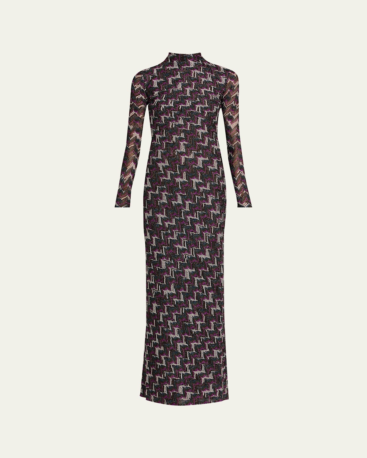 Metallic Zigzag Long-Sleeve Maxi Dress