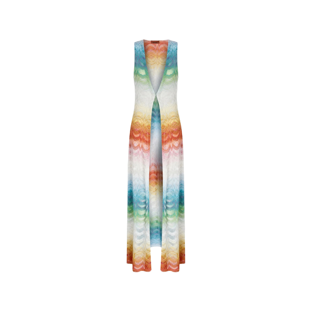 white, blue, and multicolour wave pattern sleeveless button closure The item you receive may differ slightly from the item photographed. This is due to the artisanal nature with which all Missoni products are constructed.