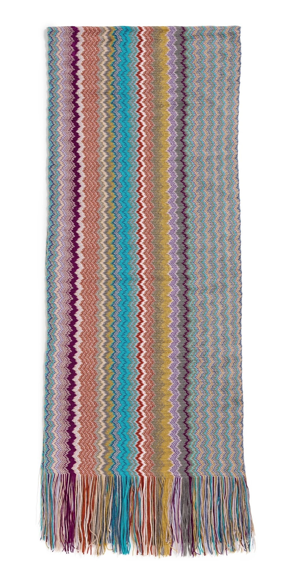 Fabric: Lightweight knit. Signature zigzag pattern. Fringe trim. Shell: 81% wool/19% viscose. Made in Italy. Measurements: Width: 17.25in / 44cm Length: 75.5in / 192cm