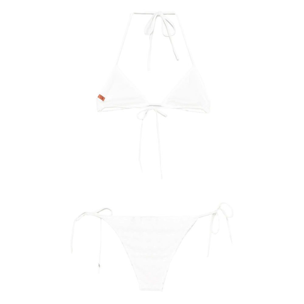 white tie fastening iridescent fabric triangle cups Be mindful to try on swimwear over your own garments. The item you receive may differ slightly from the item photographed. This is due to the artisanal nature with which all Missoni products are constructed.