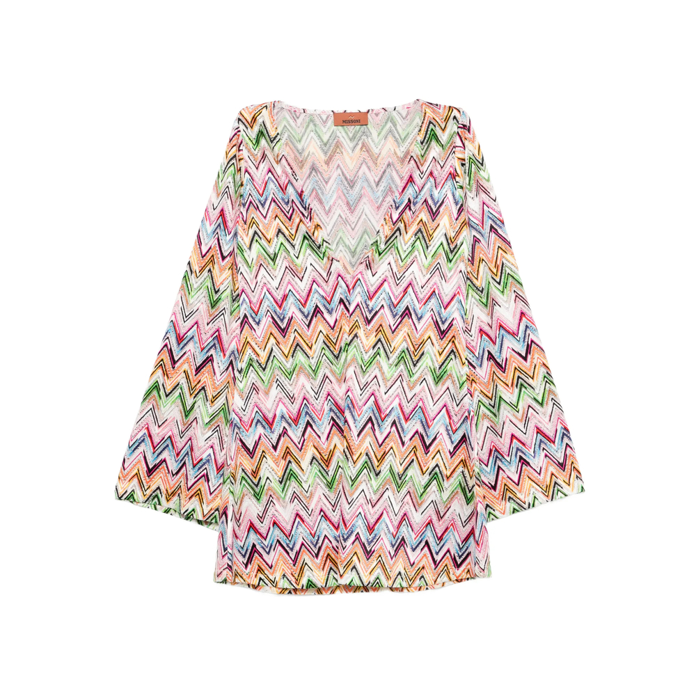 white and multicolor zig-zag pattern V-neck wide sleeves The item you receive may differ slightly from the item photographed. This is due to the artisanal nature with which all Missoni products are constructed.