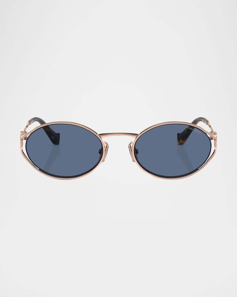 Miu Miu "MU 52YS" oval sunglasses in metal and plastic Cutout frames Solid lenses; logo on corner Adjustable nose pads Logo on temples Thin, tapered arms Capped earpieces Spot clean 100% UVA/UVB protection Made in Italy