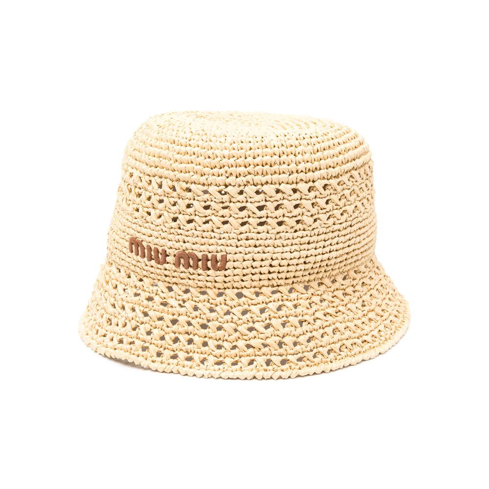 Embroidered-logo Raffia Bucket Hat