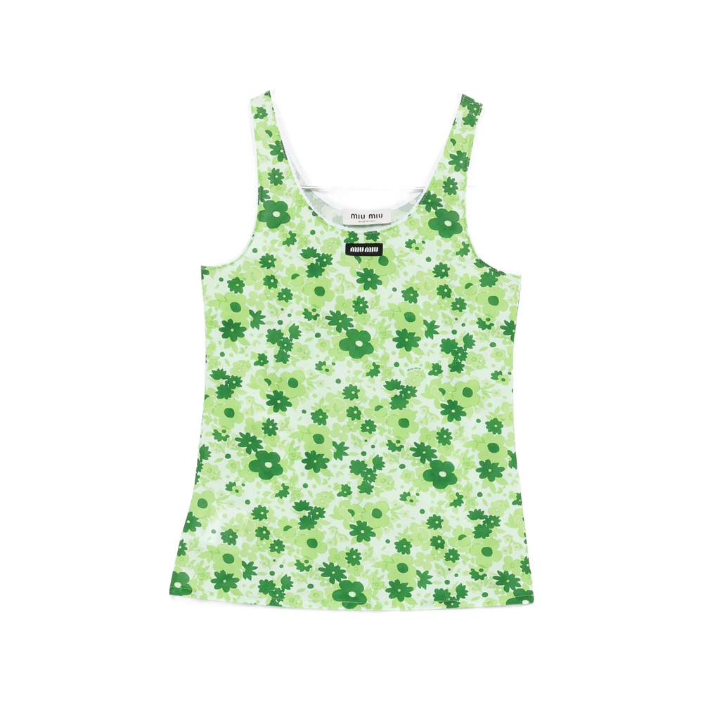 green floral print sleeveless scoop neck