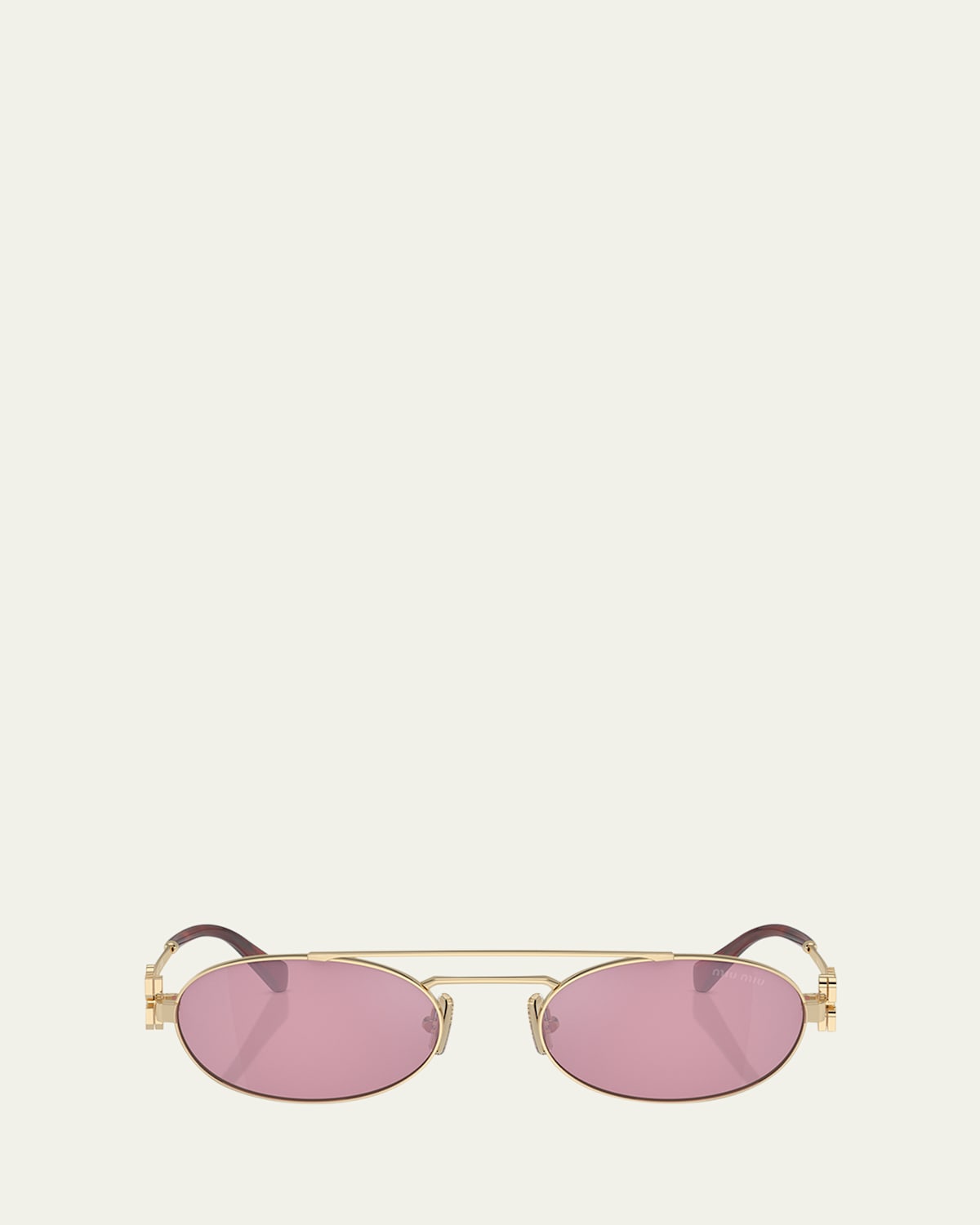 Miu Miu "MU 54ZS" oval aviator sunglasses in metal Lens/bridge/temple (in mm): 5319140 Solid lenses; logo on corner Adjustable nose pads Logo on temples Capped earpieces 100% UVA/UVB protection Made in Italy