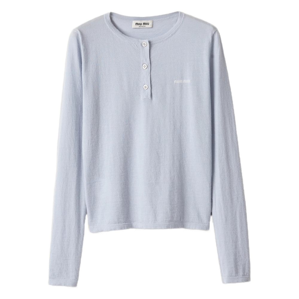 light blue logo detail regular fit crew-neck long sleeves three-button closure