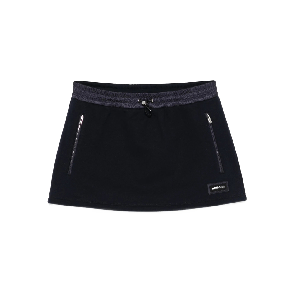 blue zip detail drawstring fastening logo patch elasticated waistband