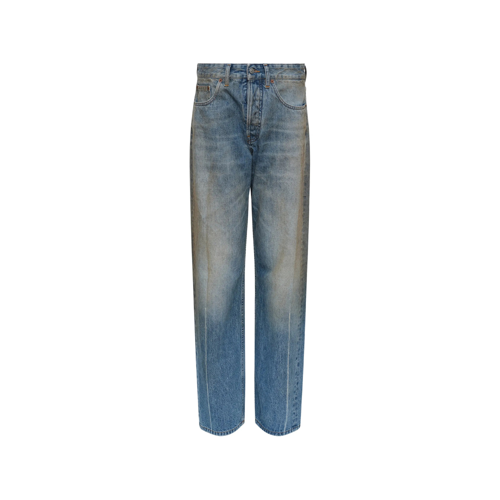 denim blue faded effect five pockets straight leg