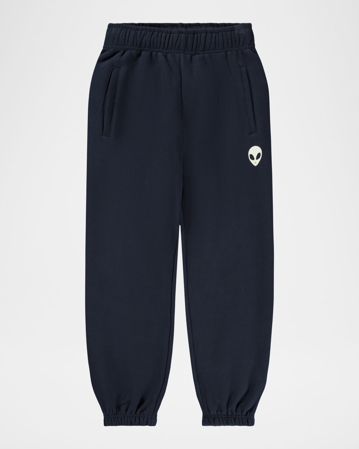 Molo "Allen" sweatpants punctuated with an alien print Elasticized waistband Front welt pockets Elasticized cuffs Cropped at the ankle Pullon style Cotton/polyester Imported