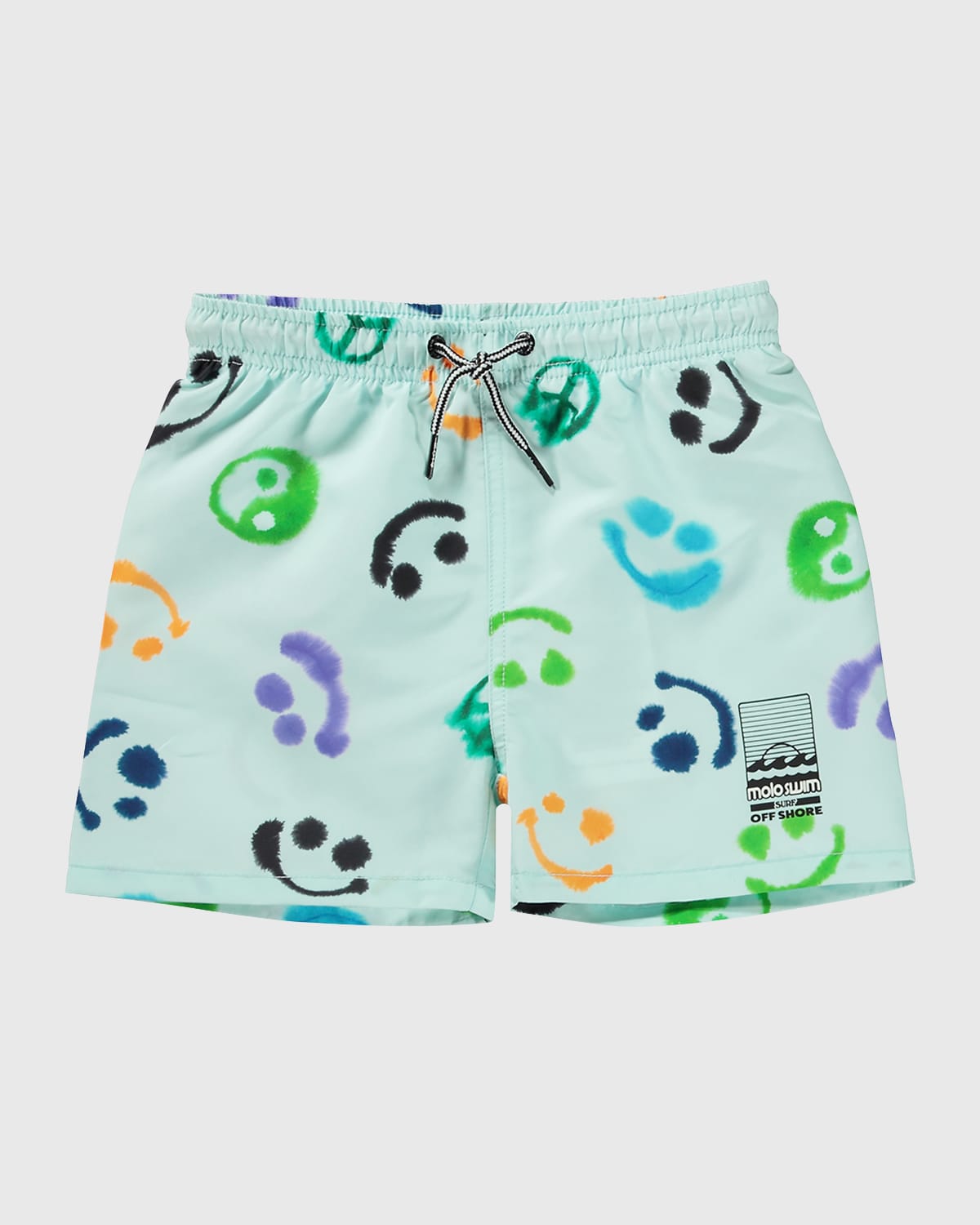 Boy's Niko Happy Face Printed Swim Trunks, Size 3T-6