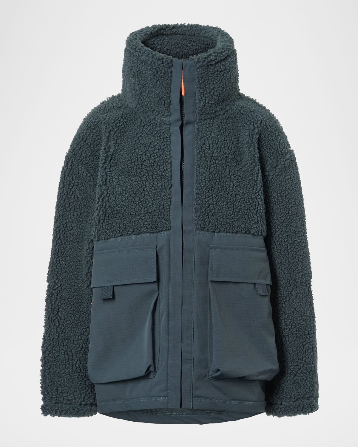 Molo "Utha" cozy hybrid fleece jacket finished with matching ribbed edges Stand collar Long sleeves Elasticized cuffs Two front zip pockets Zip front closure Polyester Imported