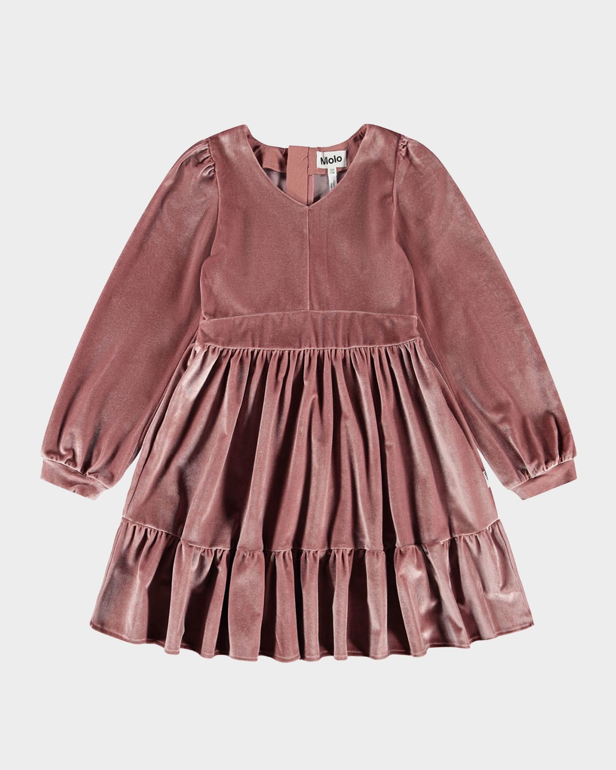 Girl's Calanthe Pleated Velvet Dress, Size 7-12