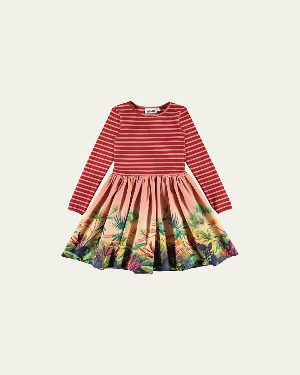 Molo "Cassie" dress with striped top and jungleprint skirt Crew neckline. Long sleeves. Fitandflare silhouette. Slipover style GOTS certified organic cotton Machine wash Imported