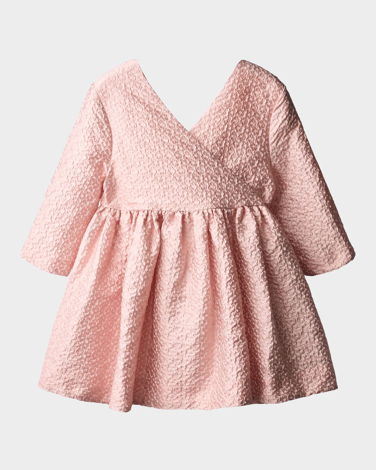 Accented with a playful bow, the Molo "Coco" dress is cut from textural fabric for depth and visual interest Surplice V neckline Long sleeves Hem falls above the knee Aline silhouette Slipover style Polyester Imported
