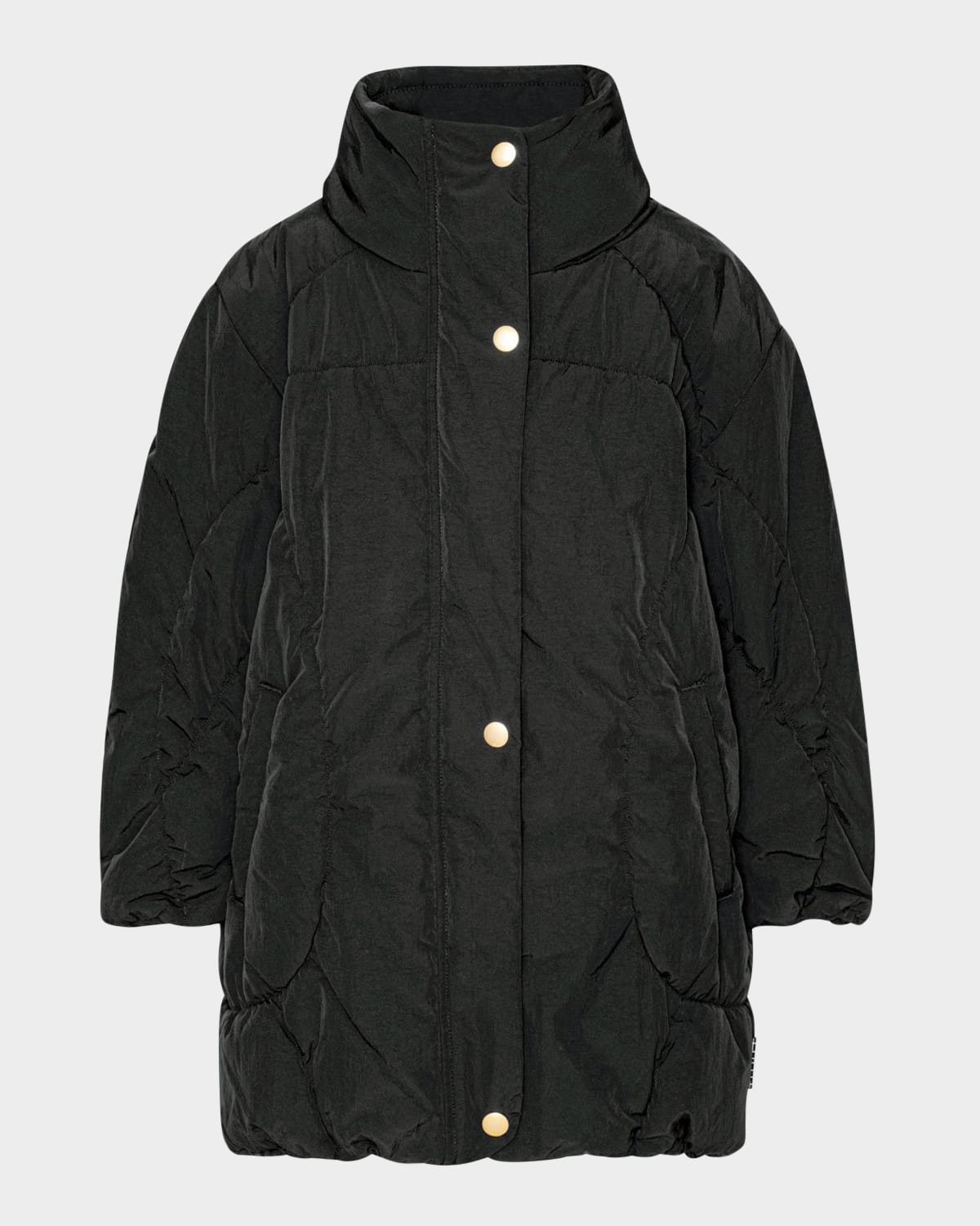 Molo "Halima" quilted coat with goldtone buttons Stand collar Long sleeves Concealed zip front Snap front Side slip pockets Straight hem Nylon/polyamide Imported