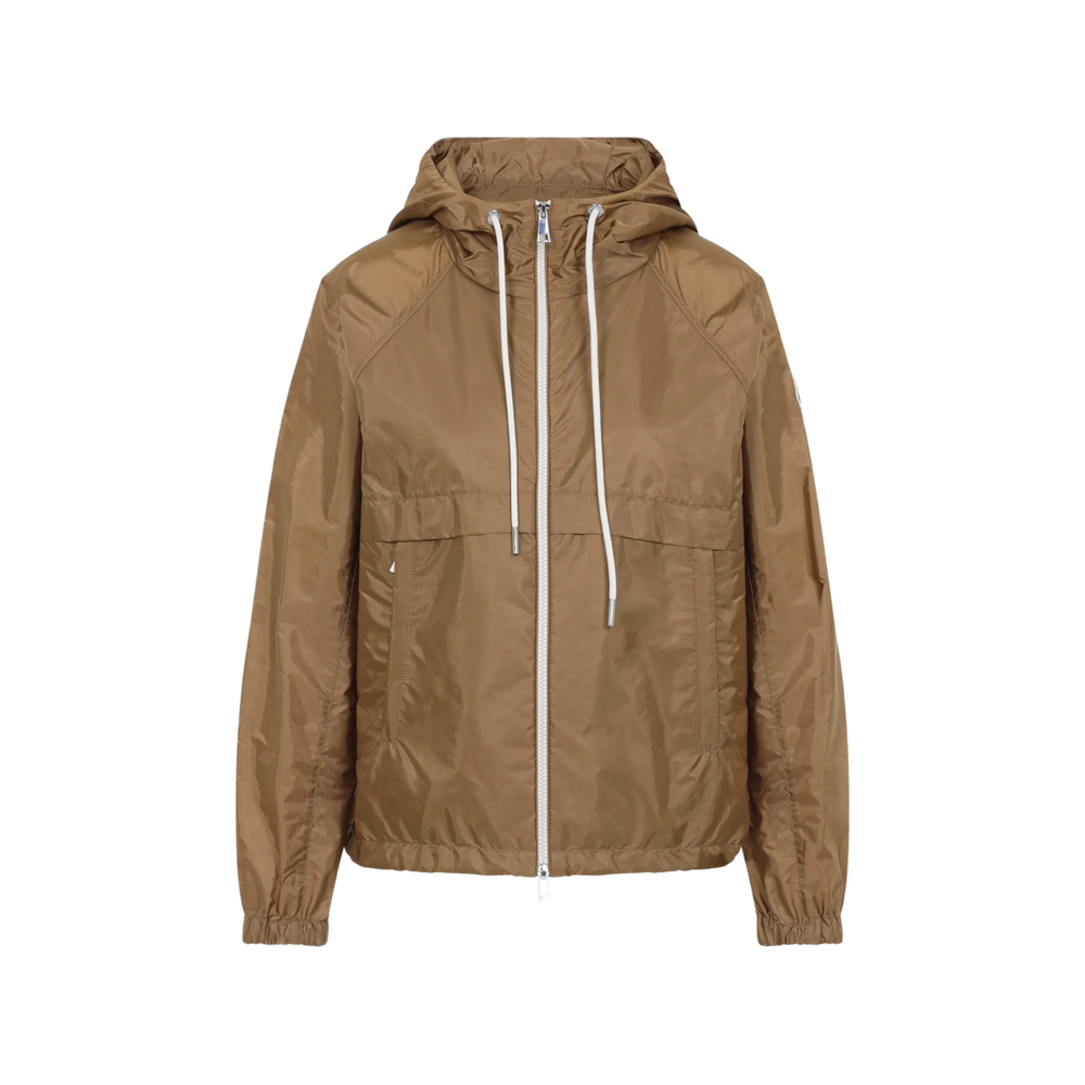 beige drawstring hood front zip fastening front pockets