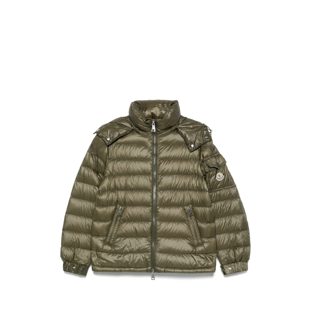 green padded zip fastening high neck press-stud hood fastening zip fastening long sleeves