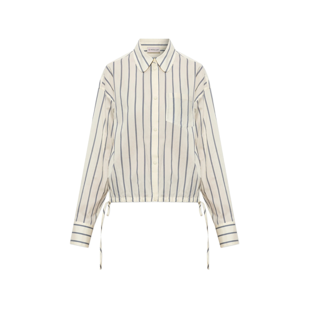 Drawstring-details Striped Cotton Shirt