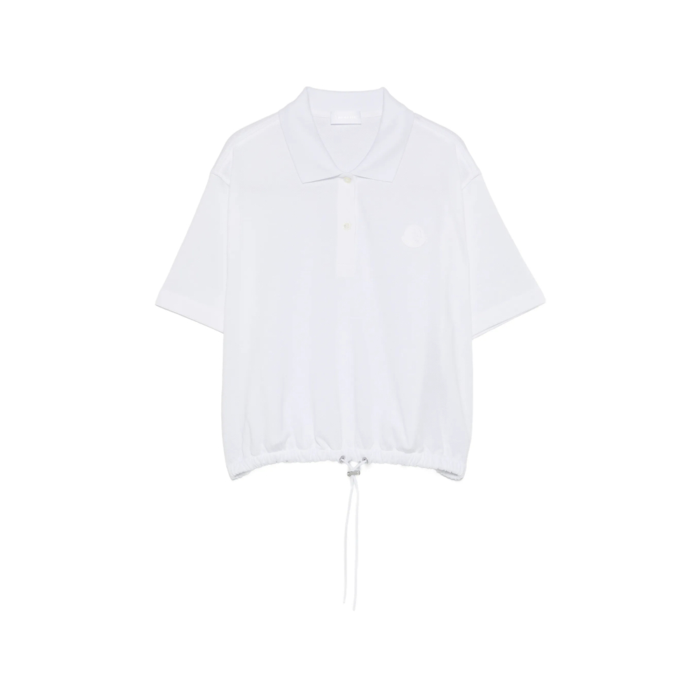 white logo patch polo collar button fastening short sleeves drawstring hem