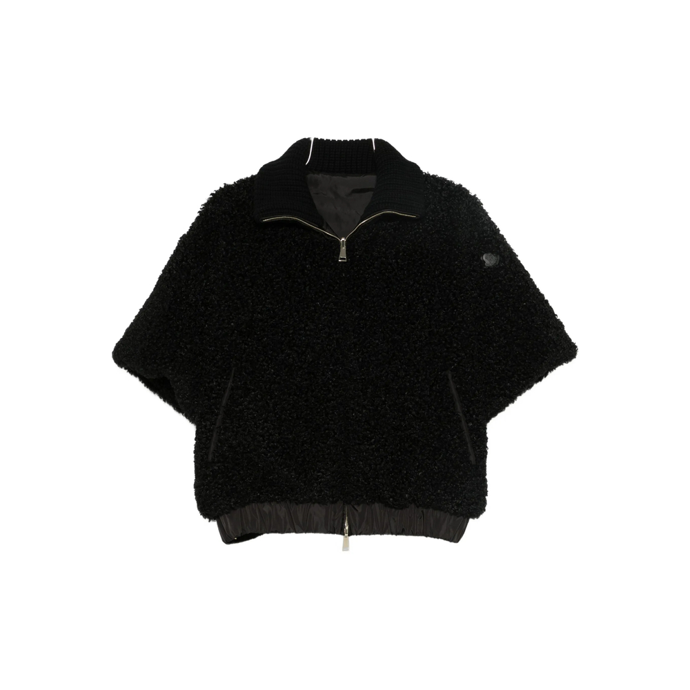 black front zip fastening short sleeves ribbed collar side zip pockets logo patch on sleeve