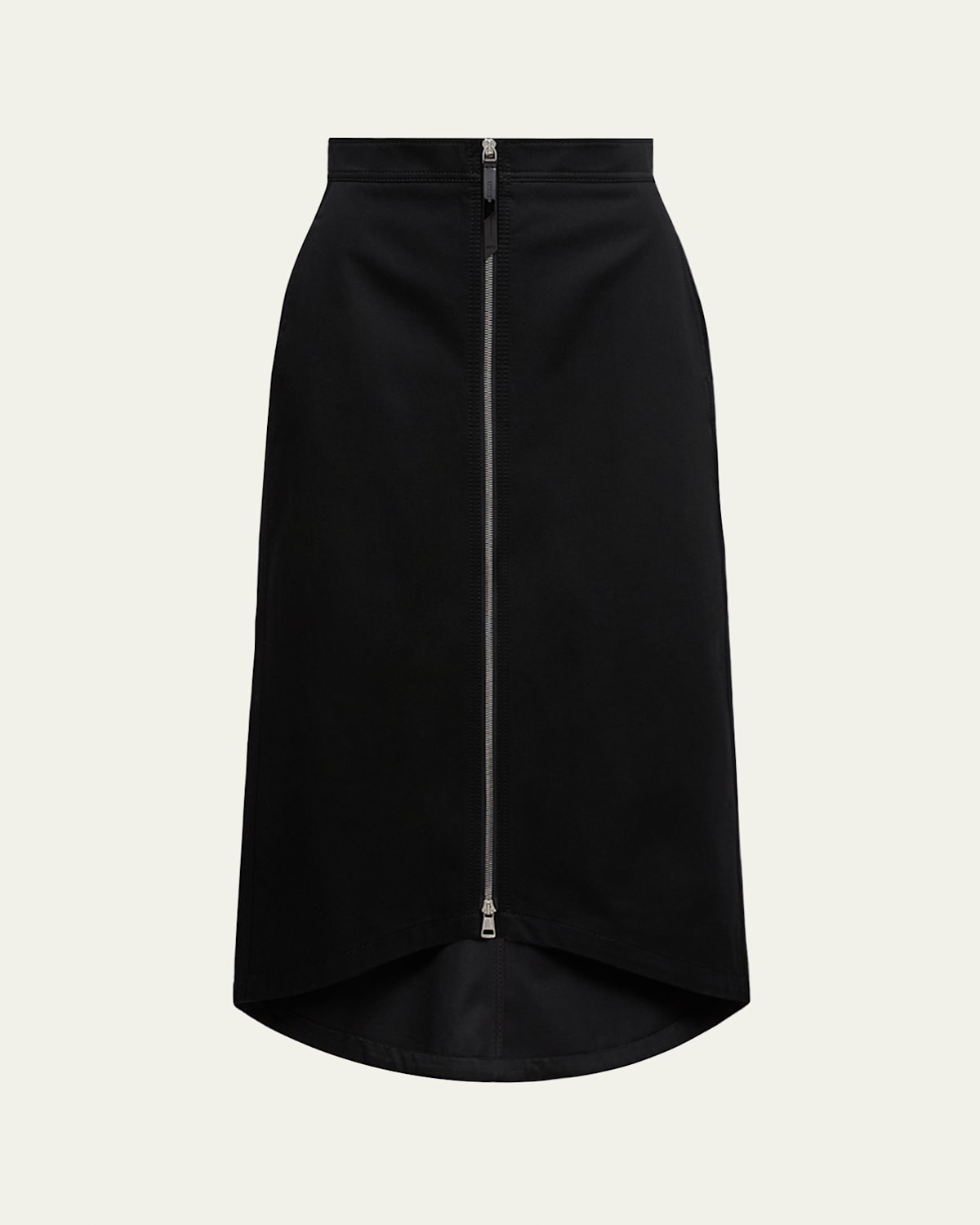 Crafted in cotton gabardine, this midi skirt from the Moncler Genius and Edward Enninful collaboration Collection offers a sleek silhouette with style and function. Highrise Skirt falls straight from hip to hem Highlow hem Exposed twoway zipfront Cotton Dry clean Imported