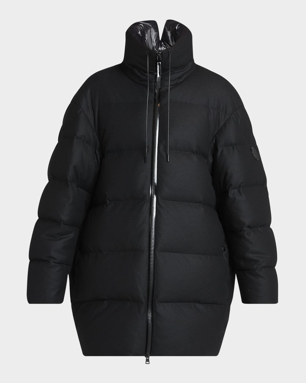 Crafted from signature longue saison with a waterrepellent finish, the "Maarutha" downfilled coat from the Moncler Genius and Edward Enninful collaboration collection features an oversized silhouette that seamlessly fuses technical performance with comfort. Features a signature tonal logo patch on the left sleeves Stand collar with adjustable drawstrings Dropped shoulders Long sleeves Relaxed, cocoonstyle fit Midthigh length Twoway zipfront Wool/nylon/polyamide Fill: Feather/down Lining: Nylon Machine wash cold Imported