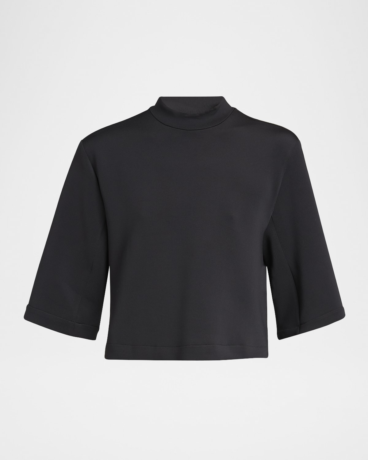 Classic Tshirt from the Moncler Genius and Edward Enninful collaboration collection, crafted from structured neoprene. Features a signature logo patch on the back. High crew neckline Short sleeves Boxy fit Cropped length Pullover style Polyester/elastane Dry clean Made in Italy