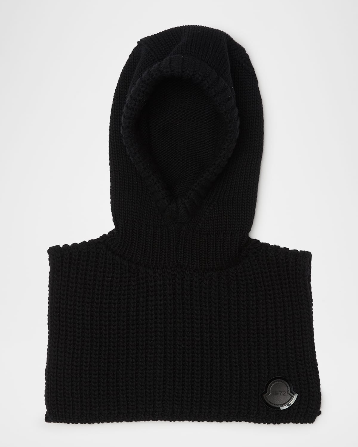 Balaclava in luxurious wool from the Moncler Genius and Edward Enninful collaboration collection. Features a signature tonal logo patch Hooded neckline Pullover style Virgin wool Made in Italy