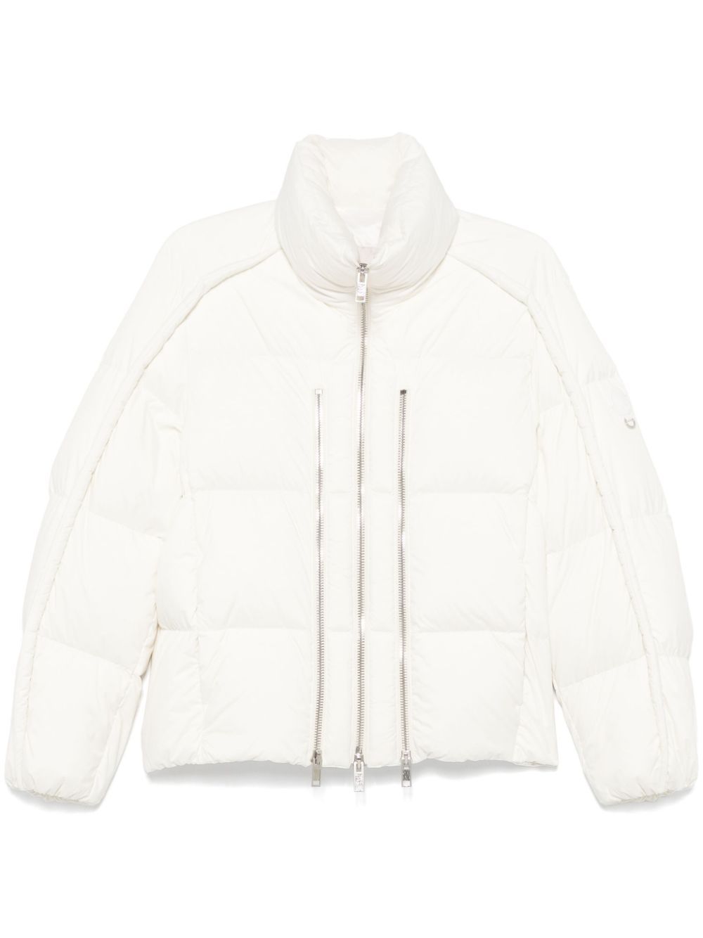 white front two-way zip fastening slip pockets to the sides elasticated cuffs decorative zip detailing