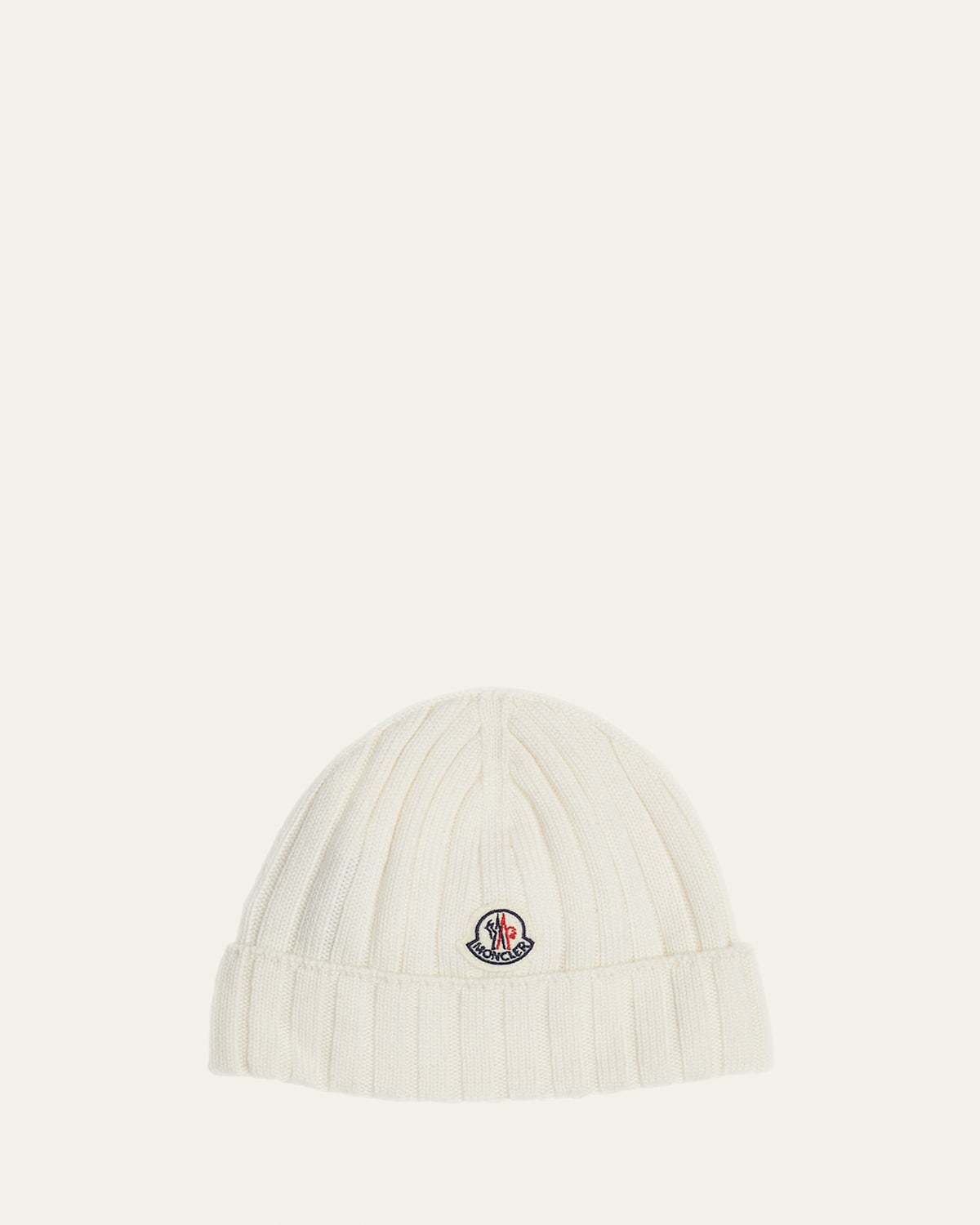 Girl's Ribbed Wool Beanie with Logo Patch, Size XXXS-