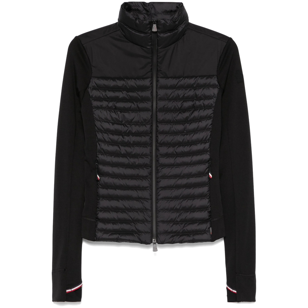 black front two-way zip fastening two side zip-fastening pockets logo patch at the sleeve quilted