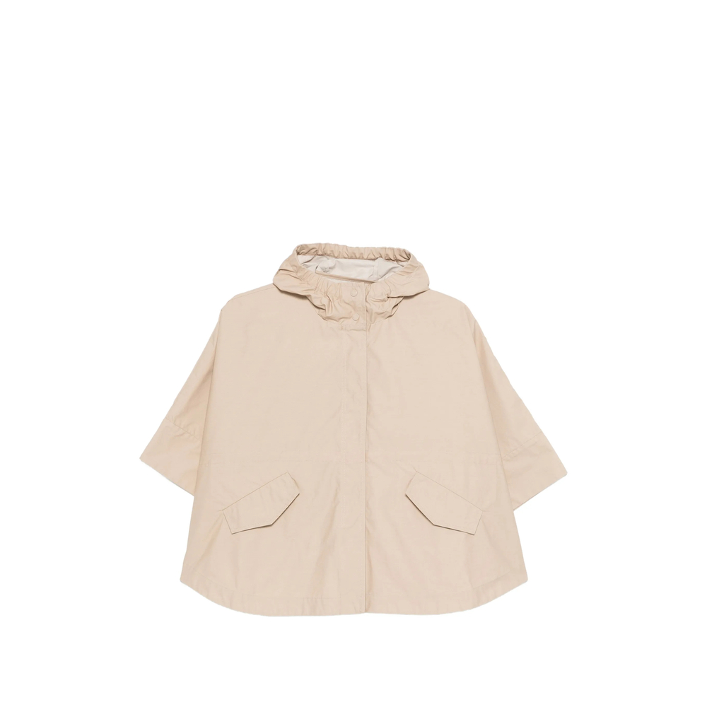 beige hood front button fastening front pockets short sleeves