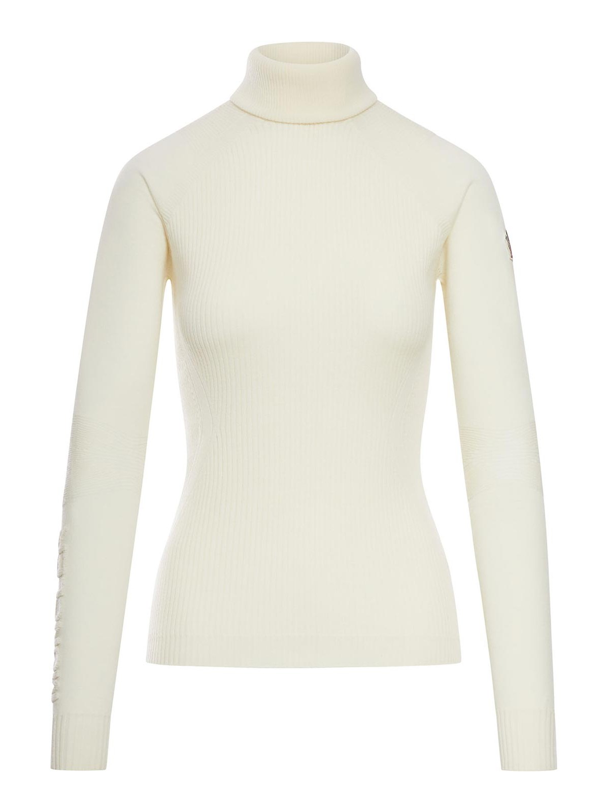 Col roulé, mélange stretch, taille haute, logo embossé sur le dessus, écusson logo sur le côté, ourlet droit, coupe ajustée, couleur naturelle
