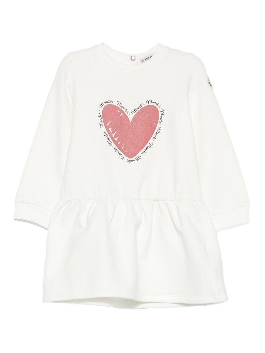 Bouton col rond à manches longues à imprimé caur blanc cassé et ourlet volanté
