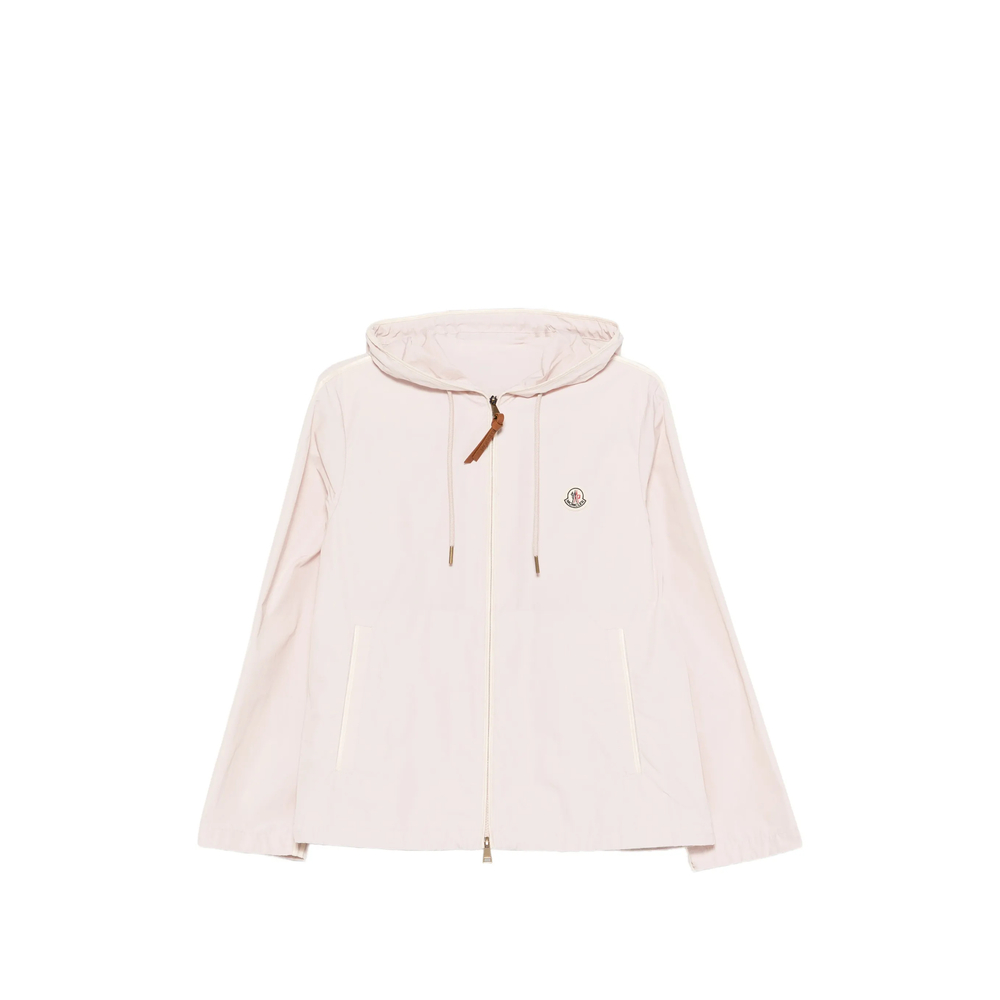 pink drawstring hood logo patch front zip fastening front welt pockets