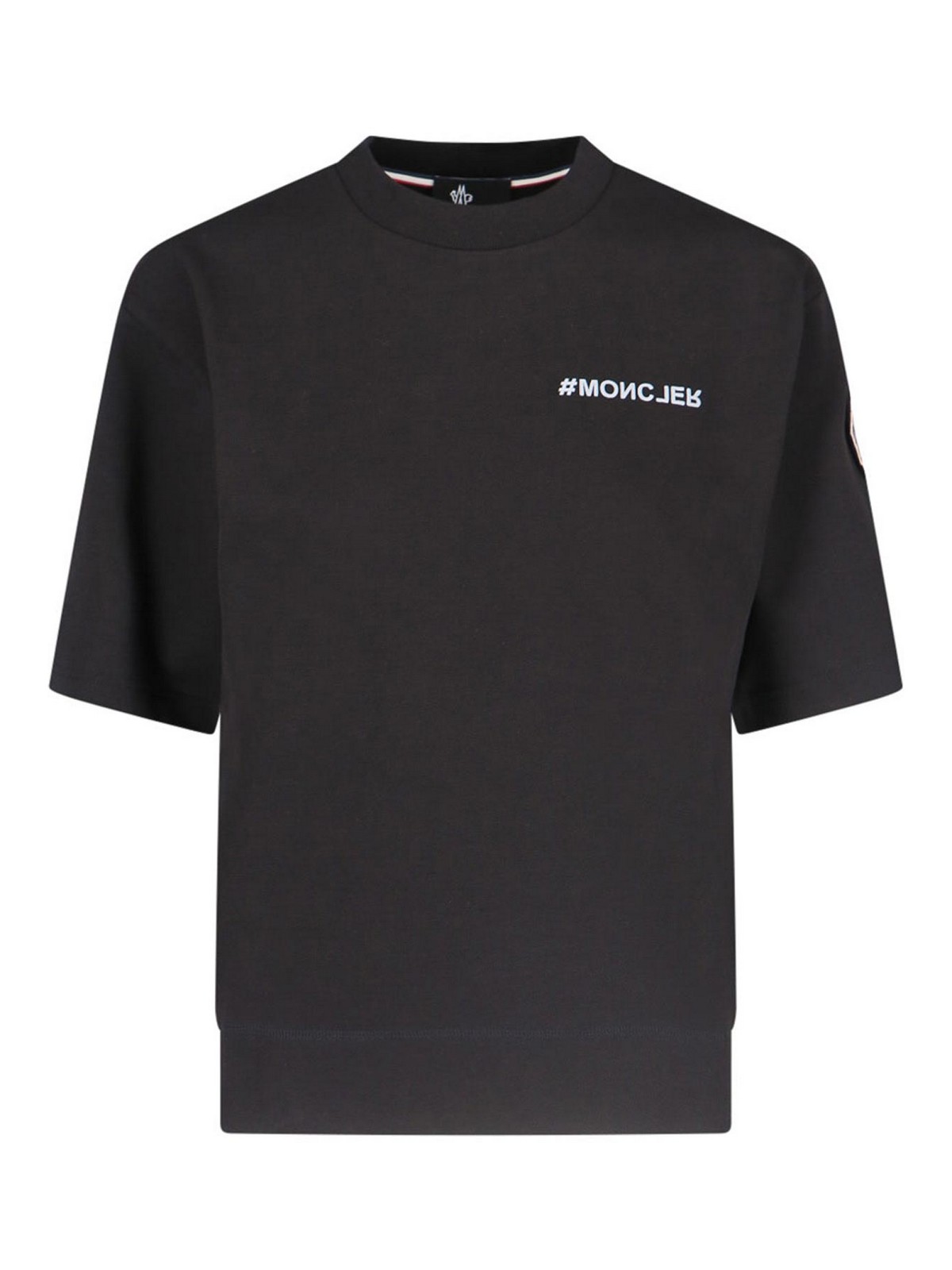 T-shirt avec logo Moncler Grenoble Nero Girocollo Maniche Corte Grigi Riflettenti Stampa Logo Petto Patch Logo Tricolore Latérale Stampa Logo Retro Finiture a Costine Orlo Dritto