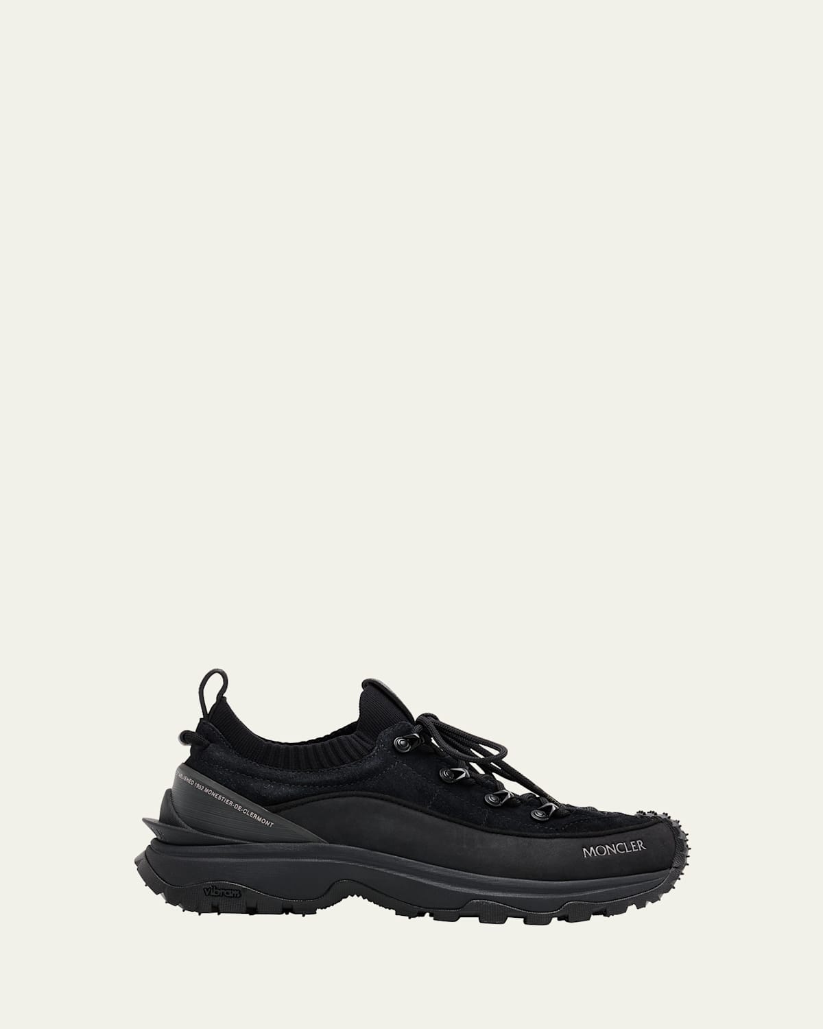 Moncler "Trailgrip Lite 3" sneakers crafted from nubuck, suede and a knit fabric upper Flat heel Laceup vamp Elastic fabric lining Pulltab at backstay OrthoLite® insole Special Vibram MEGAGRIP rubber compound tread EVA midsole Rubber outsole Imported
