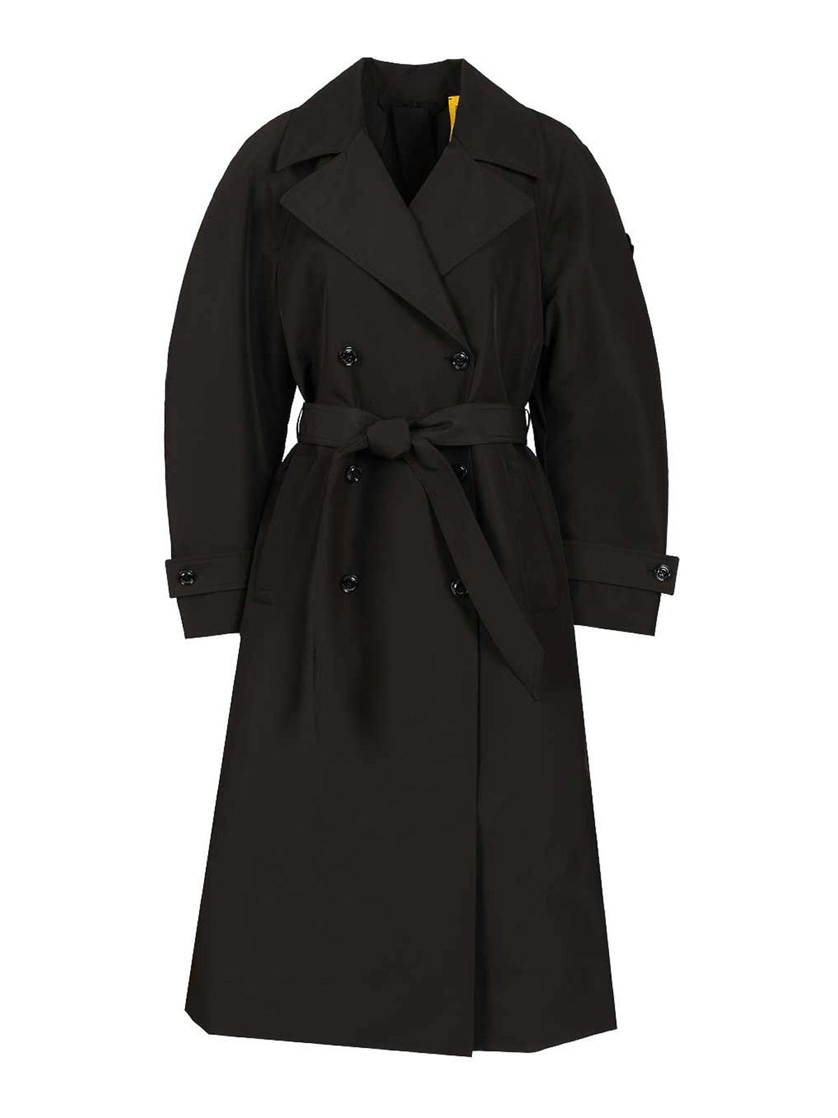 Trench-coat Moncler Genius EE by Edward Enninful Zake en L technique avec une structure à trois couches à l'aspect brossé et lisse qui garantit une protection hydrofuge. Poches passepoilées boutonnées, ceinture amovible, fentes dorsales réglables avec bretelles ajustables et amovibles, écusson logo emblématique