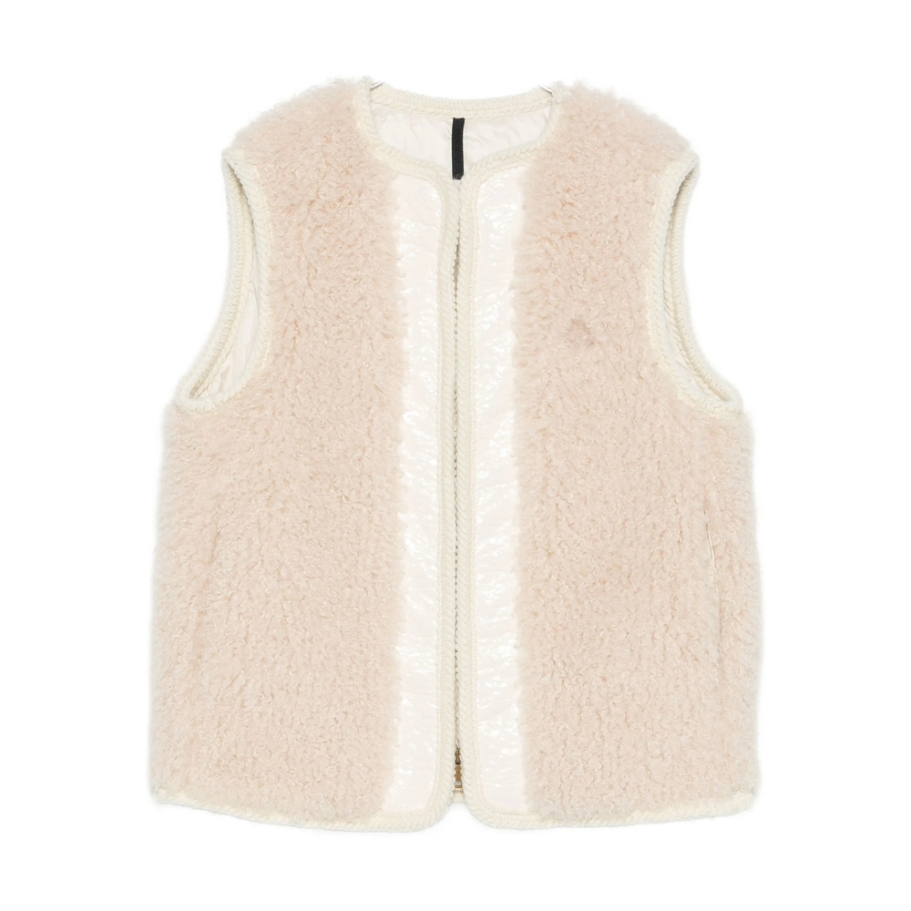 beige sleeveless front zip fastening panelled design round neck straight hem