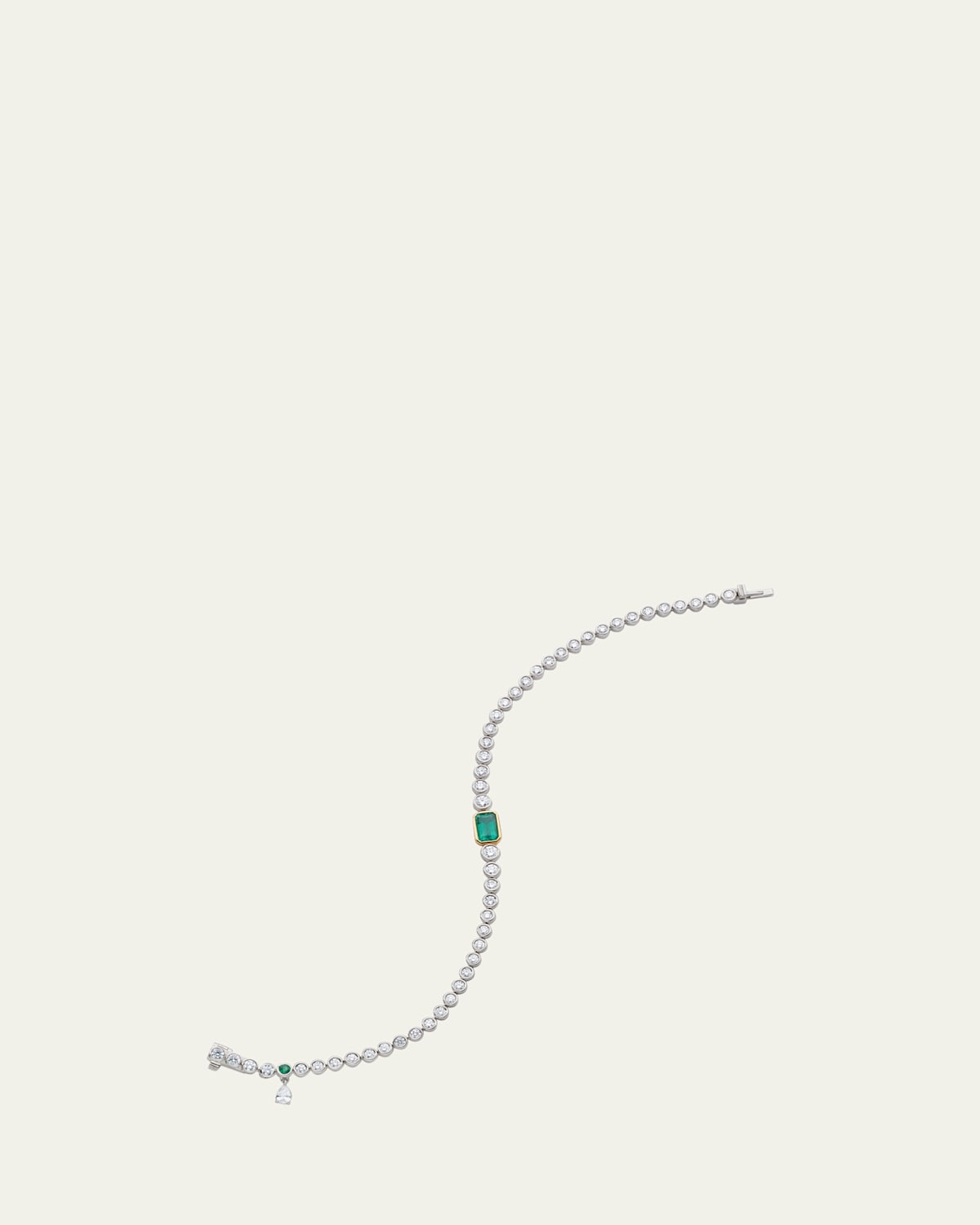 18K Gold Bezel-Set Diamond and Emerald Tennis Bracelet
