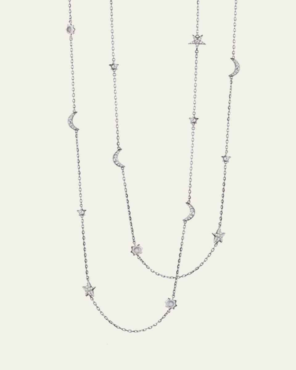 Monica Rich Kosann "My Sun Moon and Stars" necklace in sterling silver Approx. 40"L White sapphires and moonstone gemstones Moonstone carat weight: 1.44 Necklace length: approx. 40 inches Adjustable length Lobster clasp Imported