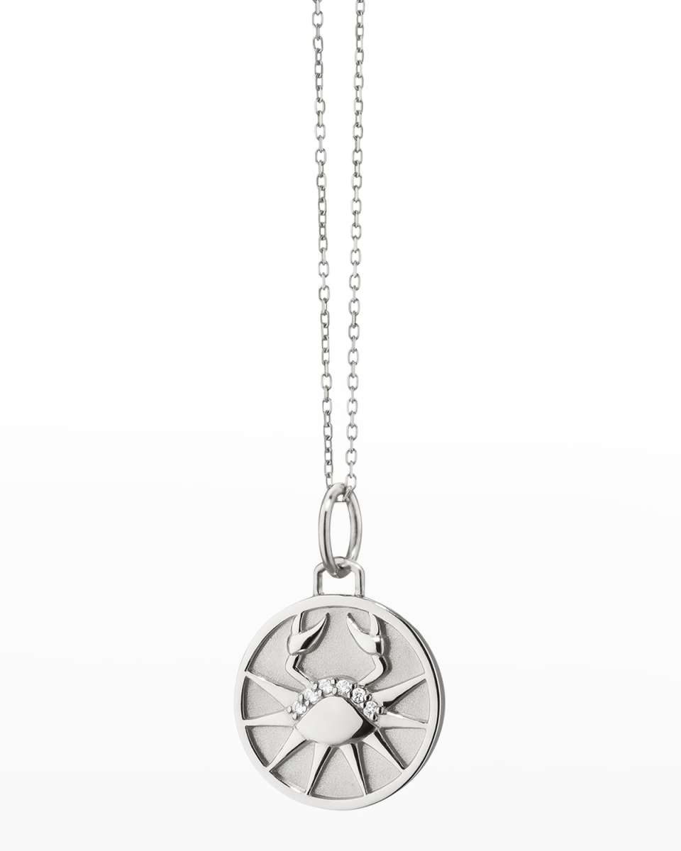 Monica Rich Kosann zodiac pendant necklace with cancer motif Polished sterling silver diamondcut chain White sapphire accents Adjustable length; lobster clasp Approx. 18"L Imported