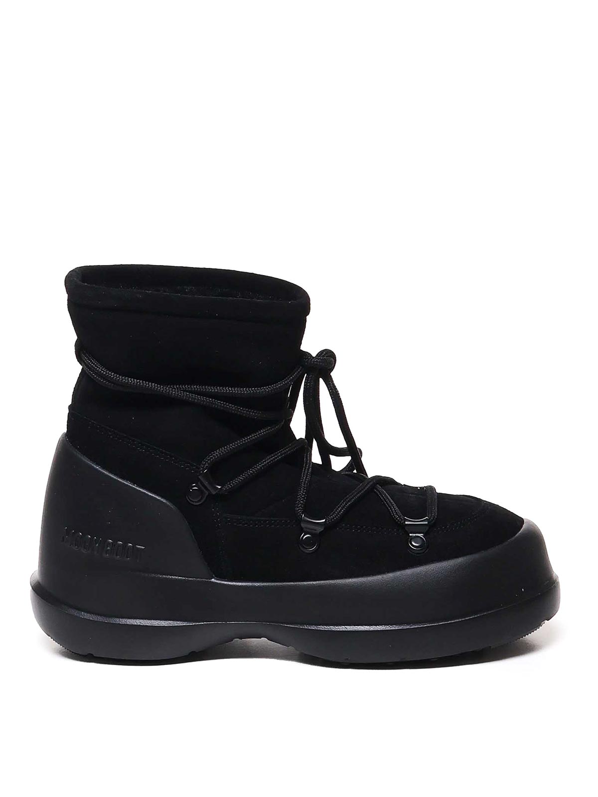 Logo embossé en daim ambidextre hydrofuge sur les aillets colorés, lacets tubulaires croisés, milieu antidérapant, couleur noire