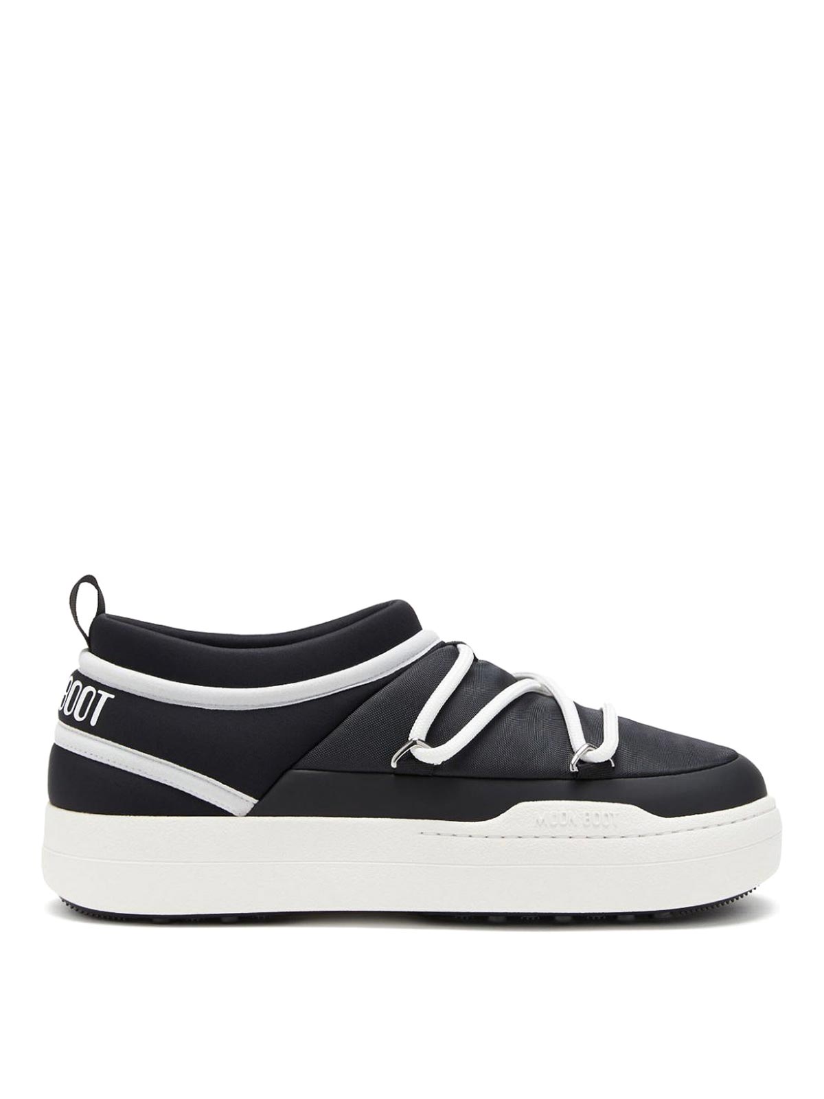 Logo noir imprimé à l'arrière, logo sur la tirette, languette sur le bout arrondi, slip, modèle sur lequel figure la marque en plat