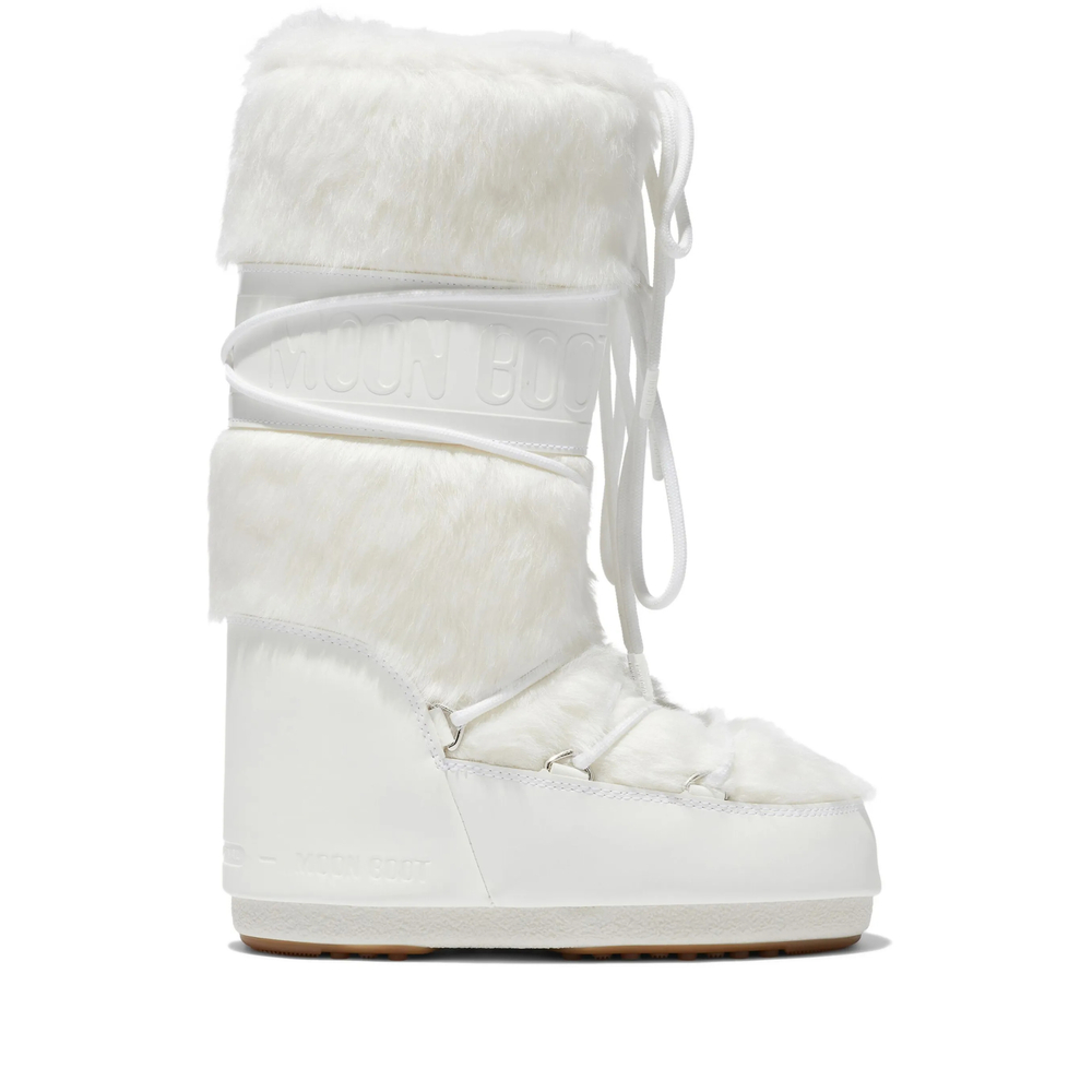 optical white water-repellent finish faux-fur trim logo print to the side round toe front lace-up fastening branded heel counter calf-length ridged rubber sole