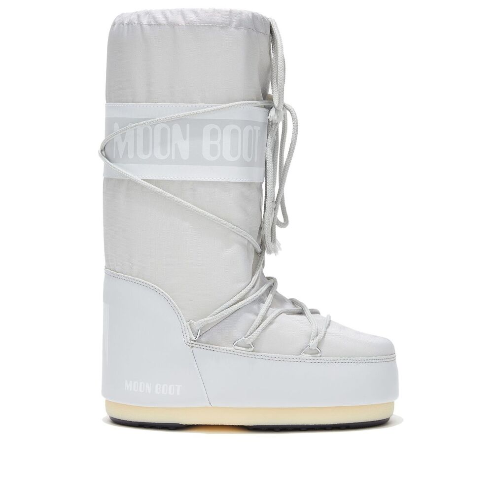 lace-up logo-print boots from MOON BOOT featuring light grey, logo print to the front, logo print to the rear, front lace-up fastening, round toe and flat rubber sole.
