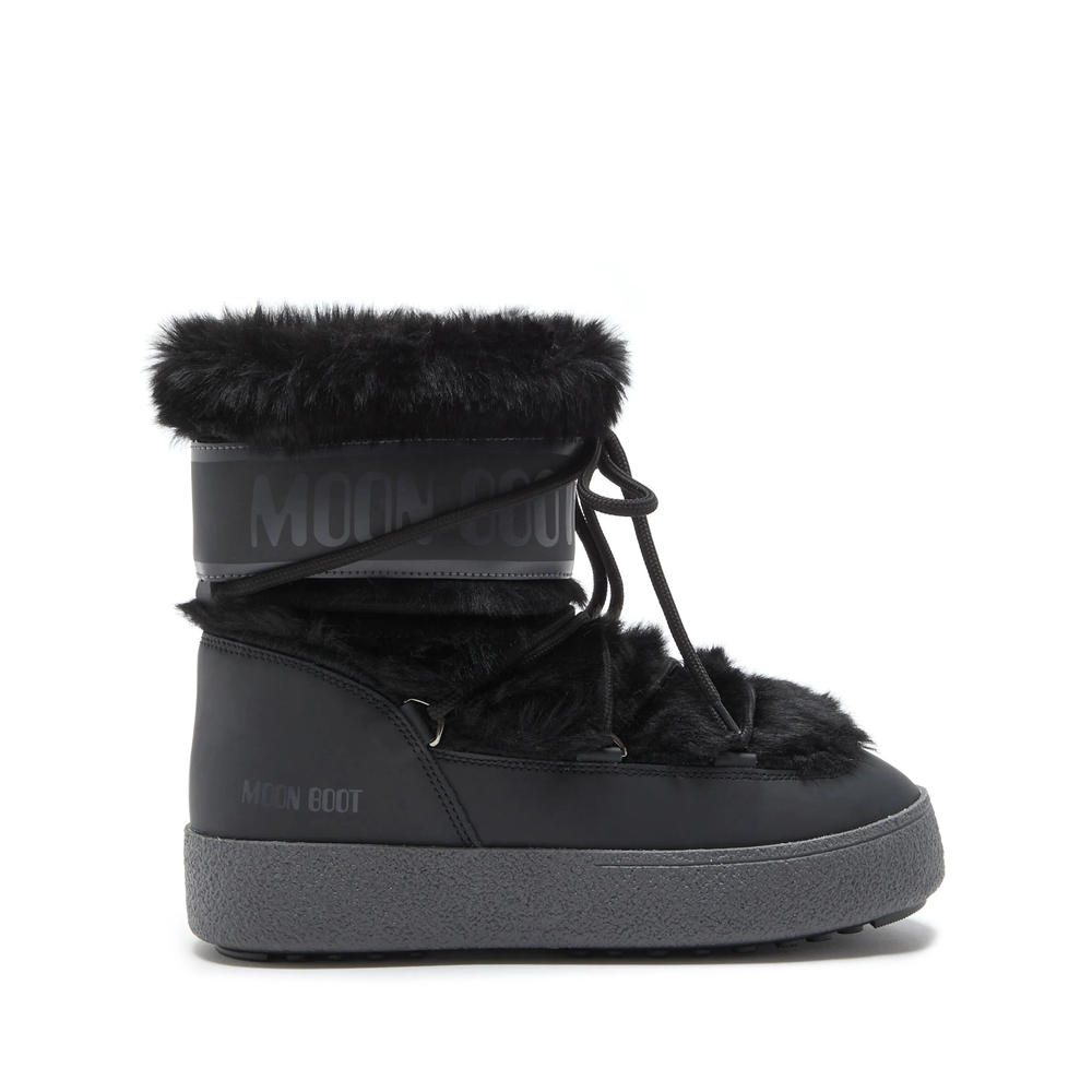 black faux-fur trim logo print to the side front lace-up fastening round toe flat rubber sole