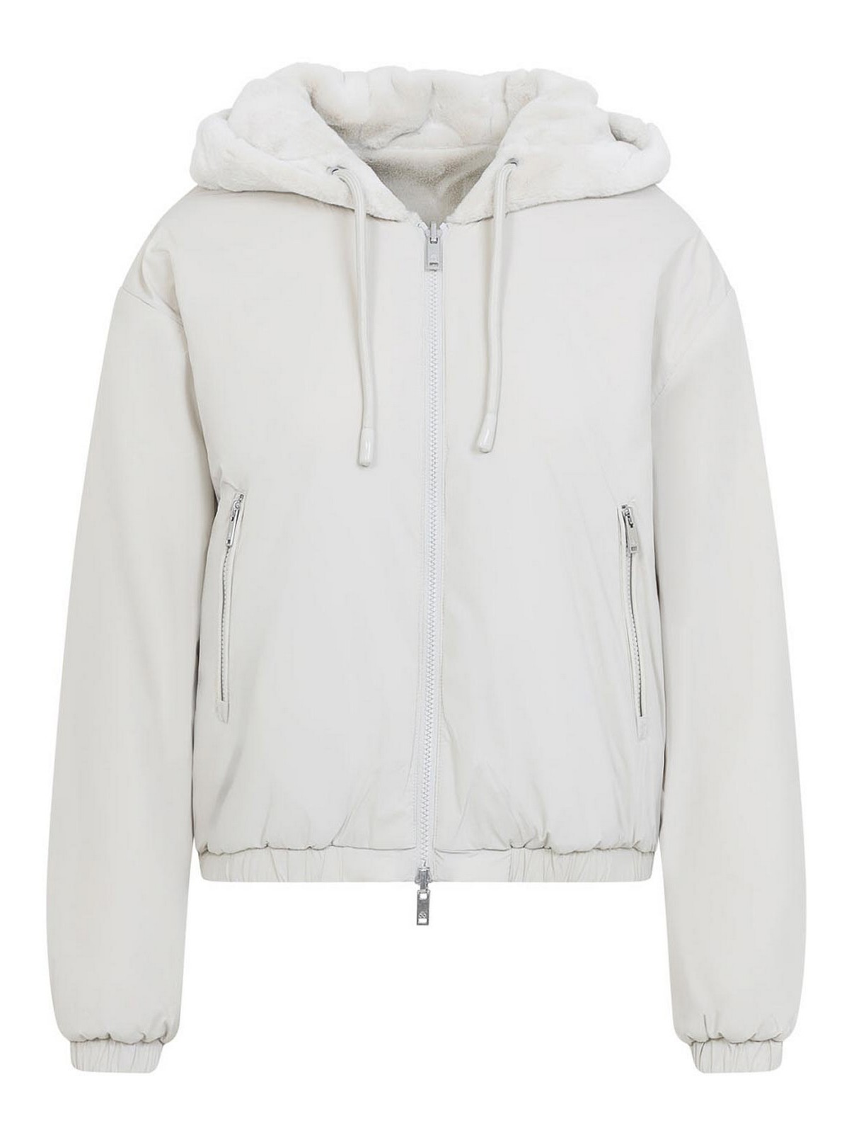 Veste Eaton Moose Knuckles en albâtre blanc albâtre, capuche ton sur ton, blanc albâtre pur, cordon de serrage, poches latérales zippées, manches longues, poignets et ourlet élastiques, ourlet droit